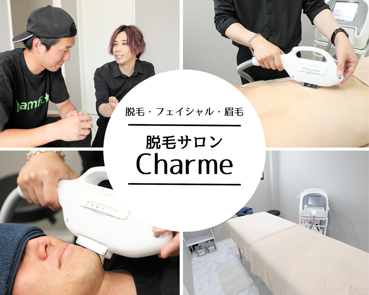 Charme(シャルム)はお客様の【魅力】を最大限に引き出せるプライベートサロンとして通いやすい低価格、脱毛効果にこだわり最新機器を導入しております。肌悩みや不安を解消し、男性の美容に対するハードルを下げたい!という想いで施術しています!美容や脱毛を身近に感じて頂けるよう丁寧にカウンセリングします!肌のことなど何でも相談してください!ご来店をお待ちしております♪