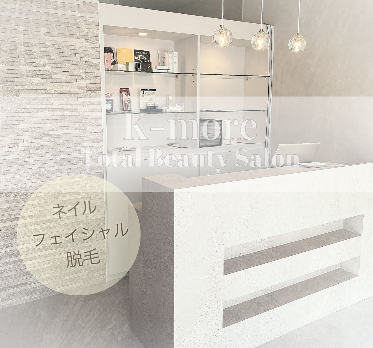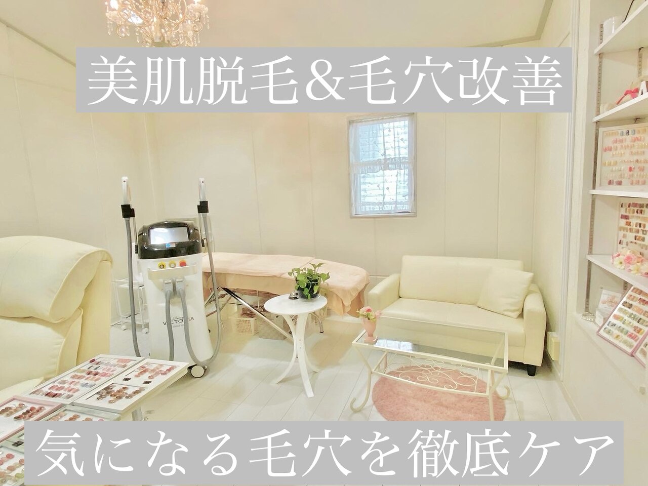ネイルを中心としたトータルビューティーサロンです!持ち込みメニューが人気のネイル◎バイマッハ使用の脱毛はレディースはもちろんメンズキッズも大歓迎◎エステはお悩み別に!フォト/ボワールリフティング/vosサロンケア☆メンズリフトも可能◎お客様のご要望にスタッフ一同真摯にお応え致します!