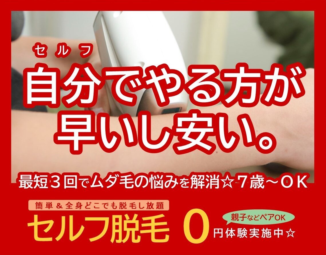 お陰様で超人気店☆「セルフ脱毛」は簡単&効果抜群!最短3回で完了☆「楽々筋トレ」は寝てるだけで筋力アップ&脂肪燃焼!3ヶ月~で驚きの痩身・健康・美容効果☆新登場の「超肌質改善」はあらゆる肌悩みを解消☆40・50代女性を中心にメンズ、キッズにも人気♪※エステカテゴリーに掲載の市内全28店中(2024年5月7日時点)