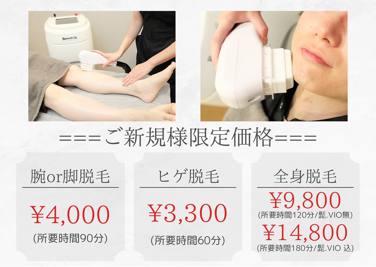 | 営業時間 | 【平日9:00~20:00/土日祝朝8:00~20:00】営業時間外もご相談可能◎お気軽にご相談ください!メンズ脱毛/ヒゲ脱毛/顔全体脱毛/VIO脱毛/全身脱毛もお任せください◎最速でお悩み解決に導きます♪ |