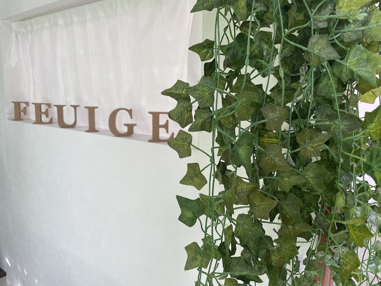 お客様お1人おひとりが、より輝くお手伝いを☆お爪がキレイになること、お目元がキレイになることで、心もカラダも美しく!! Feuige (フィジュ)はフランス語で葉っぱの[Feuilles]と天使の[Ange]の造語♪元気いっぱいの緑が溢れる空間で癒され&楽しめる&元気になれるサロンでありたいと思っております◎