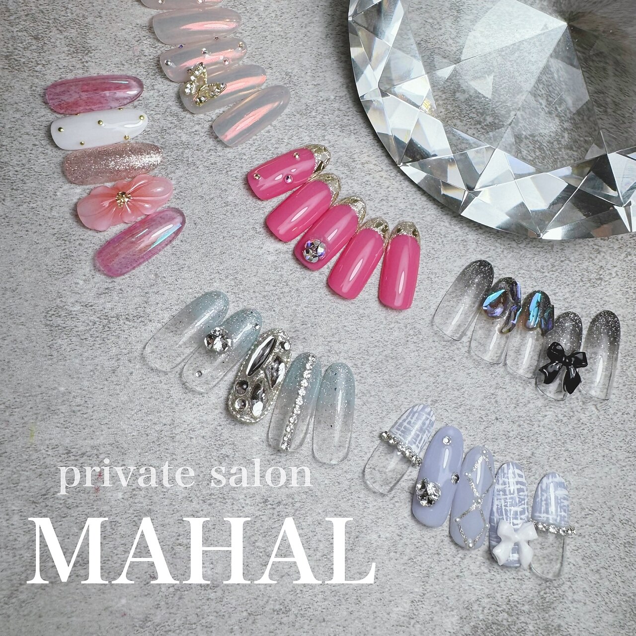 お客様の綺麗を全面サポートさせていただきます。高技術、素早さ、丁寧さを兼ね備えたネイル!浮かない、取れない、折れにくい!センスがいい!と定評のあるサロンです。MAHALで全てのビューティーが叶うようさまざまなメニューを導入しました!光脱毛/光フォト/よもぎ蒸し/アロマトリートメント/眉とフェイスWax/ハーブピーリングなど!是非一度クーポンメニューをご覧くださいね☆