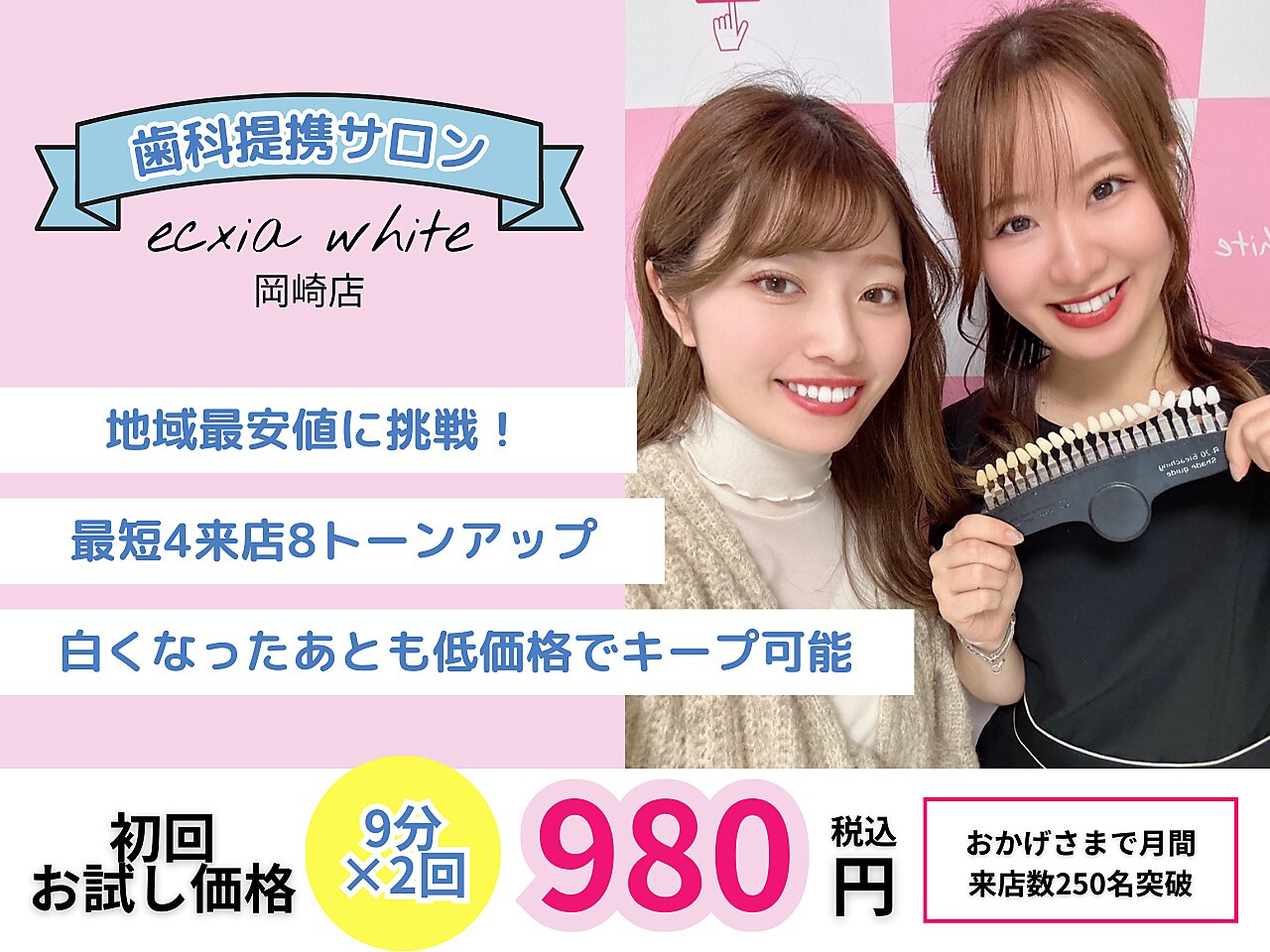 無理な勧誘は一切ナシ!!終わりのある結果重視の脱毛なので理想のツルスベBODYが叶う☆嬉しい都度払いOK&メンズも大歓迎!!駐車場完備×好立地で通いやすさ◎岡崎はもちろん西尾や安城、幸田からも通いやすい立地◇セルフホワイトニングは三河エリア最安クラスの¥2200~/辛いお疲れも改善しながら美しいお身体へ導きます
