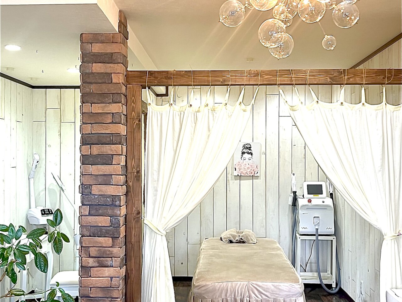 美容室と併設なのが魅力的なトータルビューティーサロン☆最新の脱毛器やエステ、筋膜リリースやお客様にあったパックの提案をしております。アイラッシュはこだわりのオリジナル毛質、アイカール、眉毛。ネイルは自爪が薄くなりにくいパラジェルを使用、大人可愛いデザインで理想の手元に♪メンズ髭脱毛も承っております!