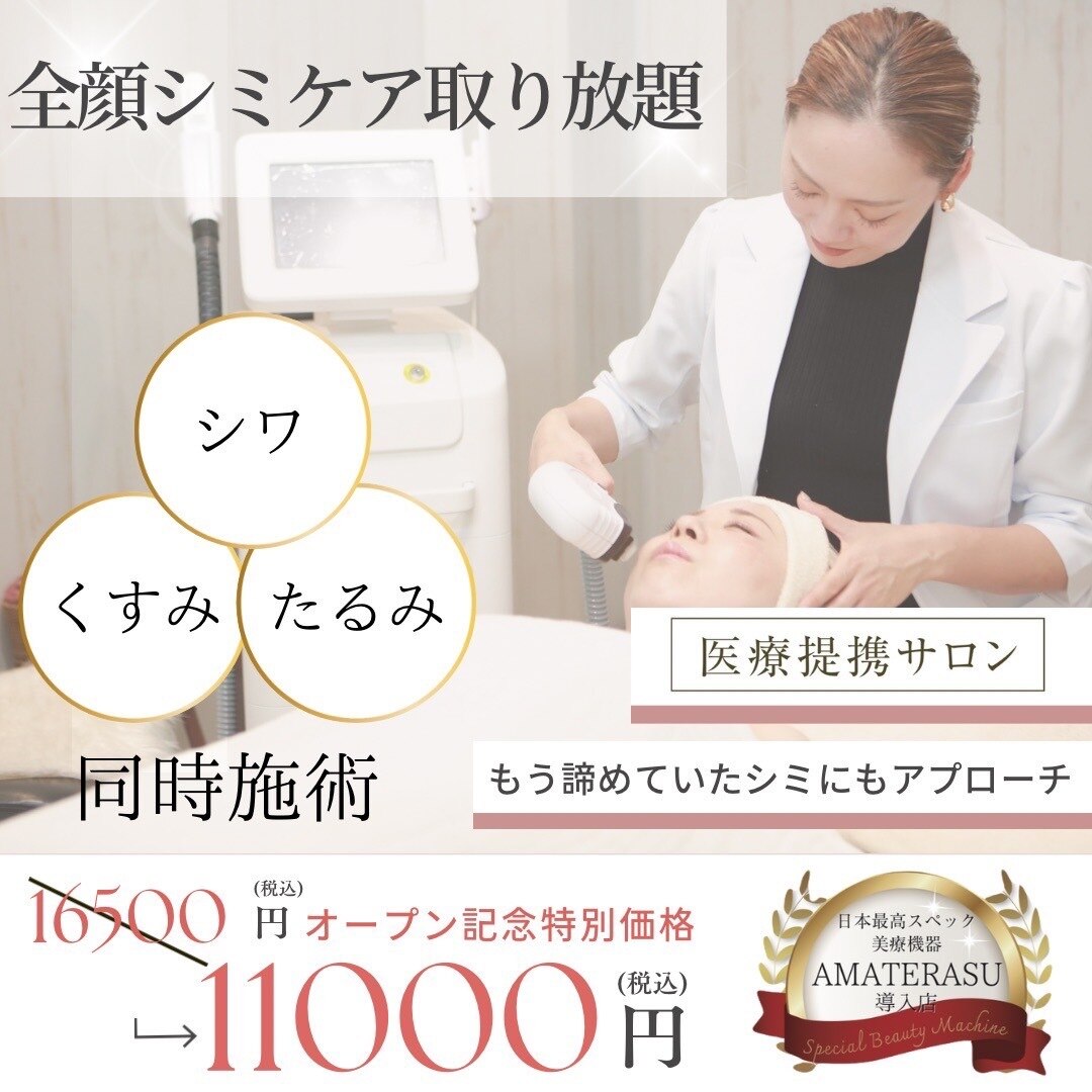 予約の取れない人気エステサロンから姉妹店【シミケア】に徹底特化した専門店がOPEN◎厳選した”本当に質の高い”最先端フォト美顔導入◎5分で効果実感&毛穴や小じわ、赤み・くすみも同時に改善!内側からぱんっと張った極上艶肌を叶えます◎ダウンタイム無しのいいことづくめ◎上質バストケアメニューもご用意