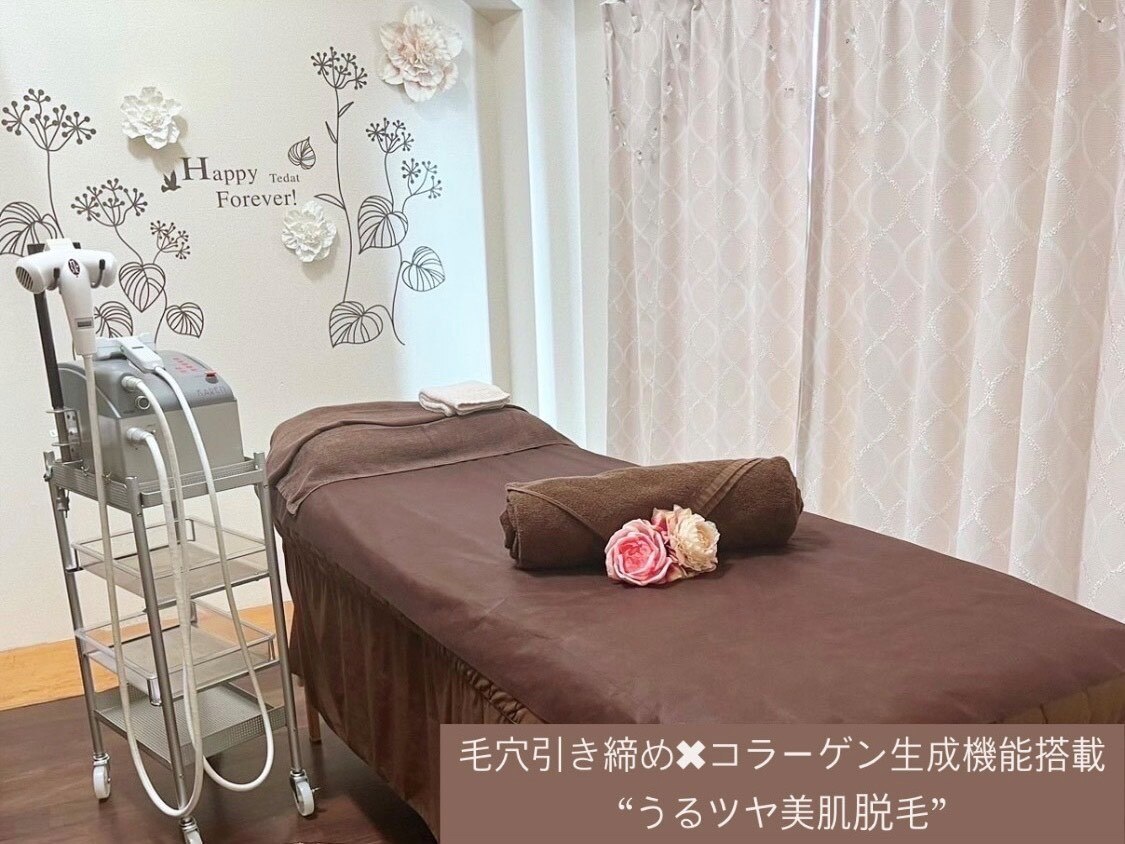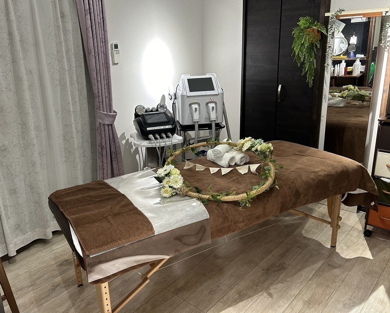 完全個室で予約制の隠れ家的なプライベートサロンで安心◎人気の美肌コラーゲン脱毛◎男性専用の部屋と女性専用の部屋完備セルフ脱毛もOK◎新たにセルフホワイトニングもご提供!人気の剥離しないハーブピーリングも大人気◎足湯付きアロマオイルフットケアリンパマッサージで足のむくみや冷え性を改善!足もスッキリ細く◎