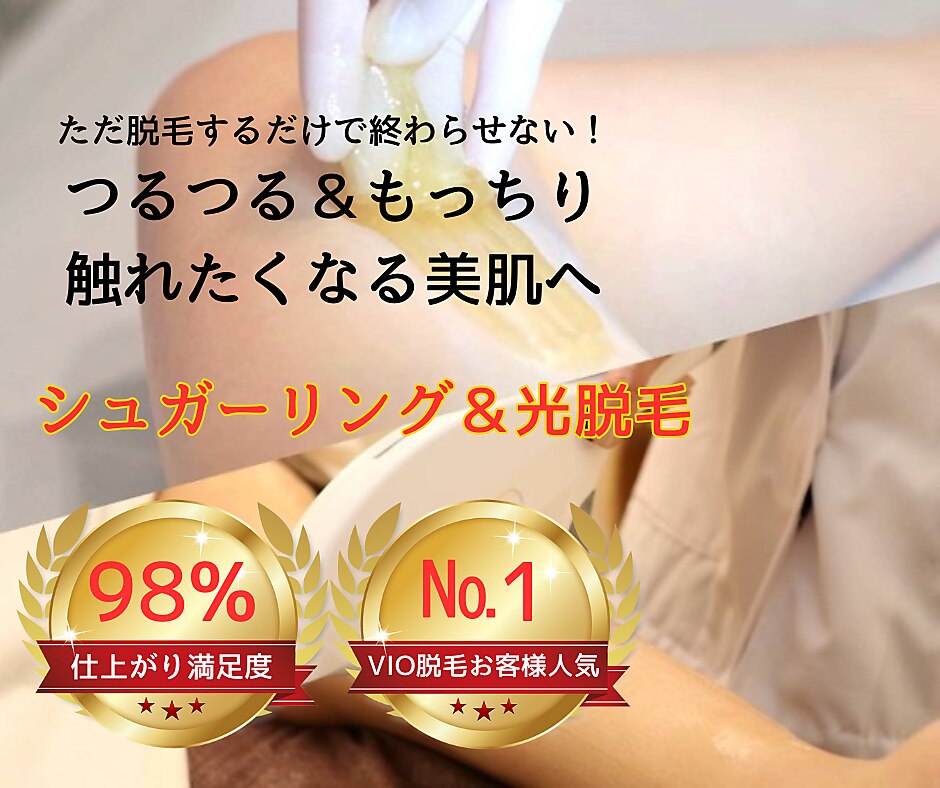 ヨーロッパやNYで話題のシュガーリングでゴッソリ抜き去ります。最新脱毛機導入によりシュガーリングと光脱毛の同時施術が可能になりました!本気で脱毛されたいかたは新メニューのシュガー+光脱毛をお試しください。仕上がりの違いや脱毛の結果に驚くお客様が続出です!〈VIO脱毛 /ブラジリアン /ハーブピーリング〉
