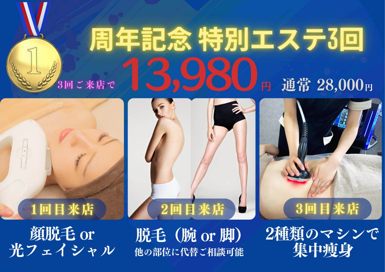 結果にこだわる本気のエステをご提供致します。効果には自信がありますのでどんなお悩みもお任せ下さい。皆様にとって“人生を変える”そんなエステサロンでありたいと思っております。エステ・脱毛初心者の方も大歓迎です◎ひとりひとりに合わせたメニューとホームケアできれいを叶えますので一緒に頑張りましょう!全力でサポート致します!