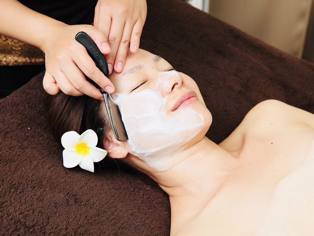 シェービングで素肌をさらに美しく♪産毛がなくなるとお肌がワントーン明るくなりお化粧ノリもUP!マシンで古い角質もしっかりケア!オールハンドマッサージや5種類から選べるパックでお肌も気分もリフレッシュ♪リーズナブルだけどクオリティの高い仕上がりで触り心地の良いお肌を叶えます♪