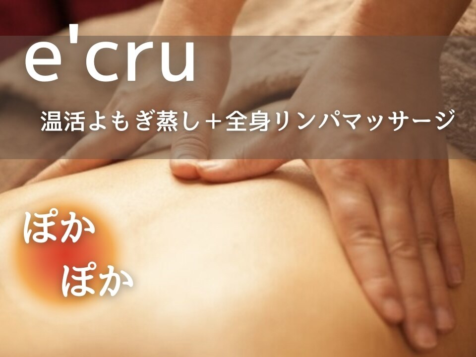 【リラクゼーション/エステ】リンパマッサージや進化形よもぎ蒸しで温活がおすすめです♪当サロンの脱毛は美肌ケアも◎コラーゲン・ヒアルロン酸・プラセンタ・15種類の植物由来の様々な美容成分を肌の隅々まで導入!妊活したい方や、日々の疲労改善、むくみ、冷え改善にリンパマッサージ&よもぎ蒸しもおすすめです。