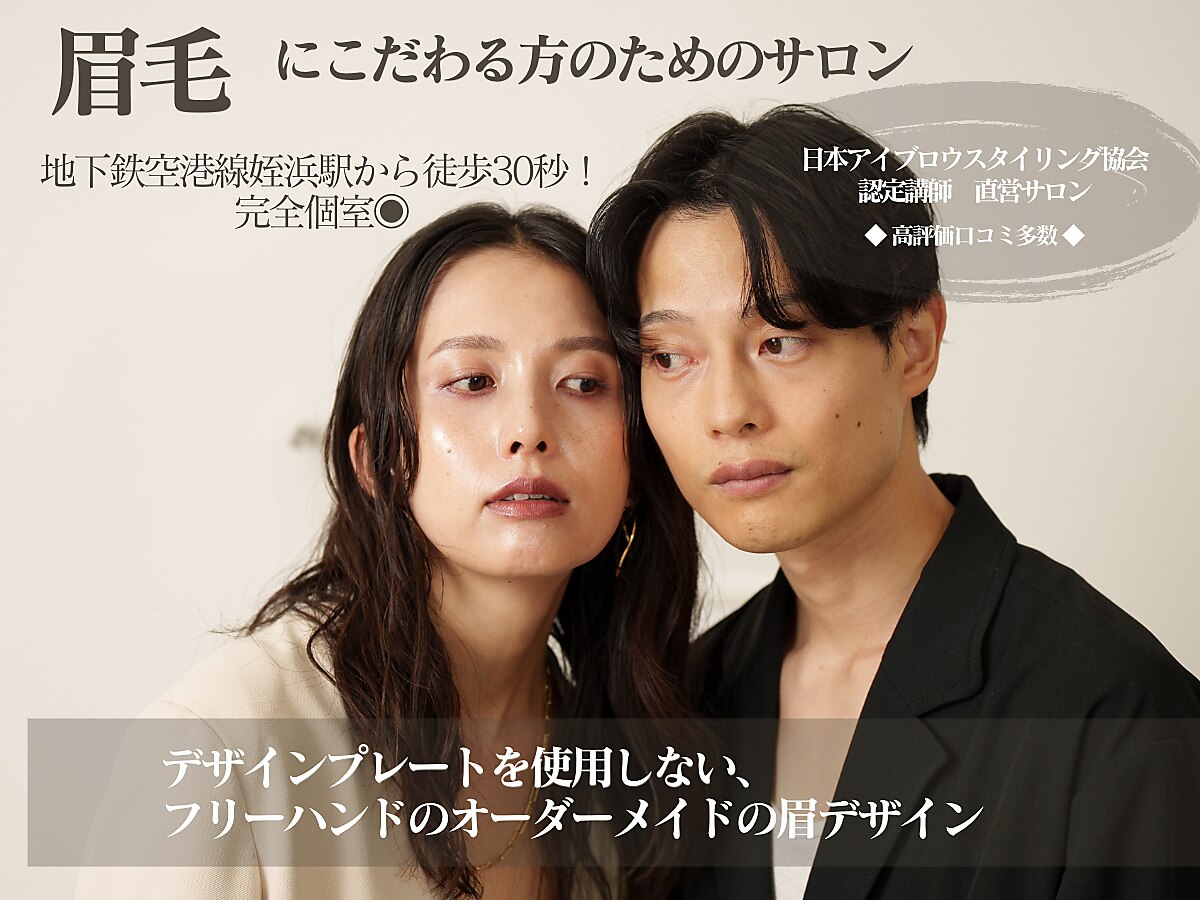 眉専門12年目、男女問わず愛される実力派サロン!九州初JESAの高品質『フリーハンド眉デザイン』で、初めての方やオーダーメイド希望の方もご満足いただけます♪パリジェンヌや似合わせまつげパーマも得意◎他店で満足できなかった方のフォローも大歓迎★自社オリジナルの耳つぼジュエリーもこだわりのデザイン♪