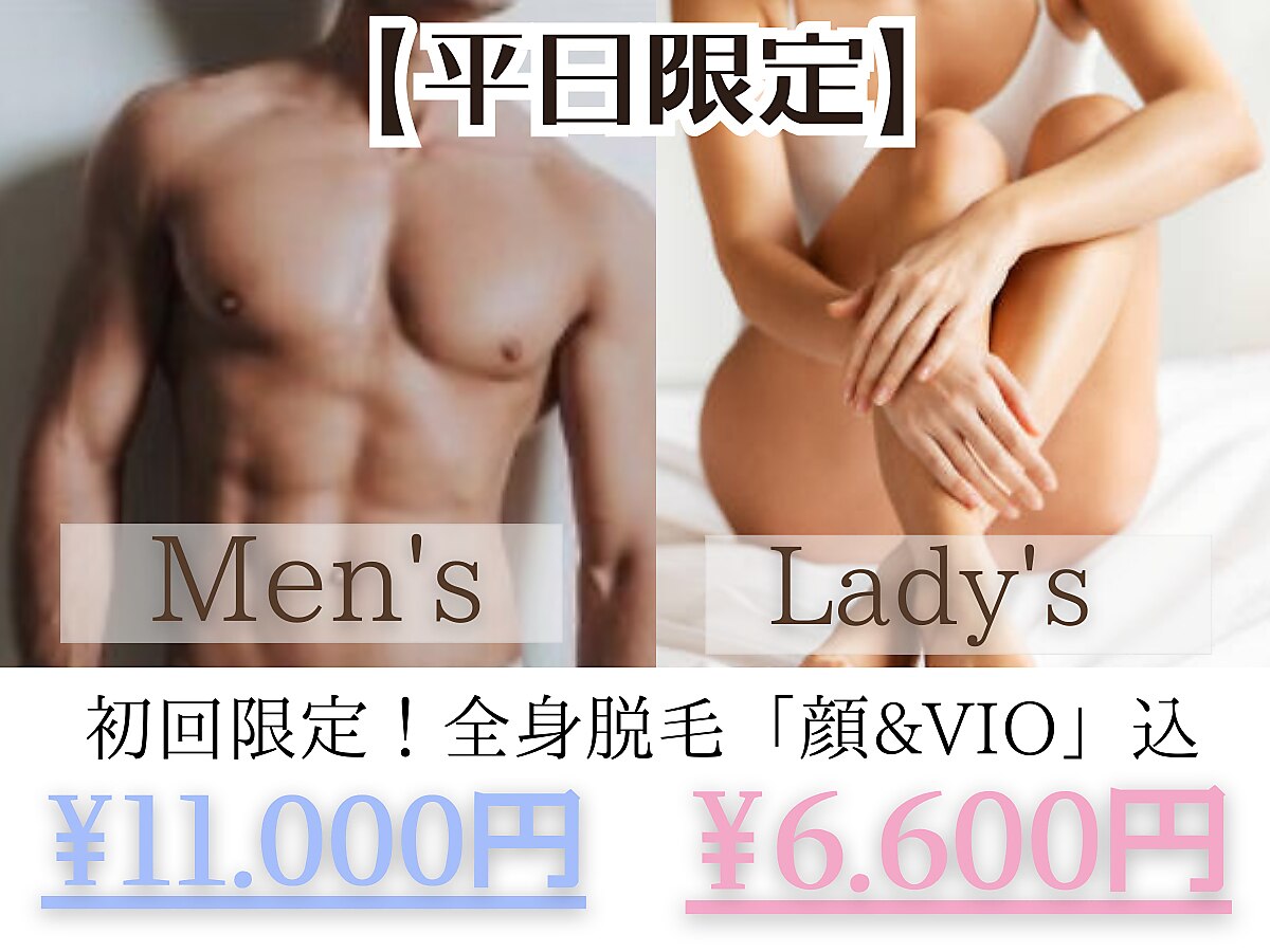 【メンズ脱毛・キッズ脱毛もお任せ♪】 痛みが苦手な方にもオススメの最新マシンでスピード脱毛!日焼け肌/産毛/白髪/など毛質や肌質に関係なくアプローチ◎照射漏れが少なく効果的に脱毛する丁寧な施術で卒業までが早い!!人気の全身脱毛もスピーディーに♪都度払いOKです!完全個室・キッズスペースあり・駐車場有
