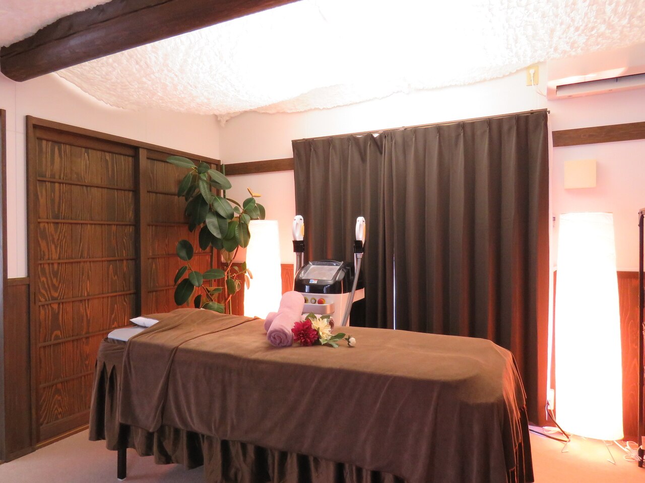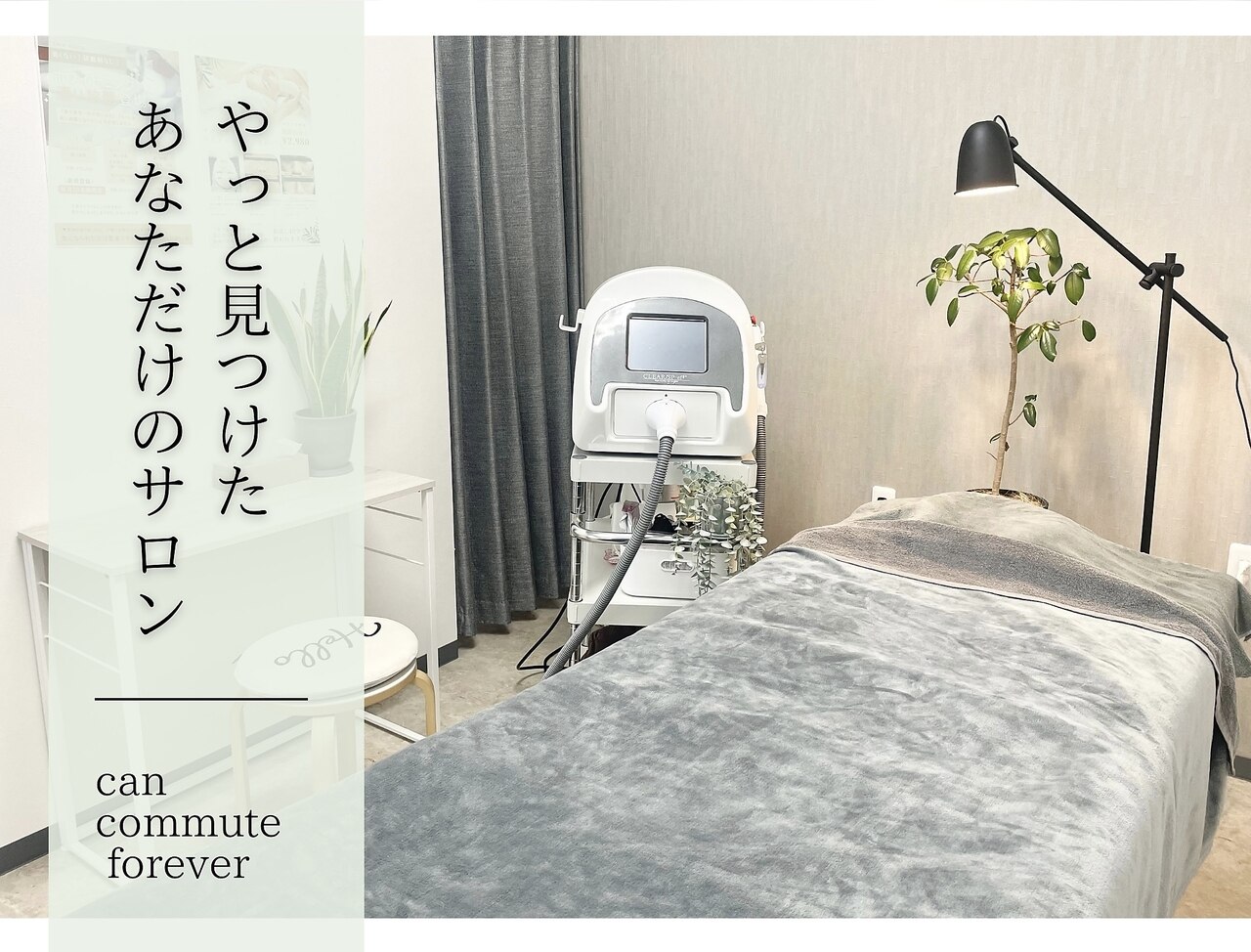 2月OPENの個室店内で貴方だけの癒し時間を…マッサージ/脱毛/光フェイシャルで顔から足先までずっと触ってたくなるお肌を作ります♪こだわりアロマオイルでじんわりほぐし、仕事・育児疲れ、ストレスを軽減。更に最新脱毛機で終わりのある脱毛が叶う☆お仕事帰りに気軽に通いたくなるプライベートサロンでお待ちしてます♪