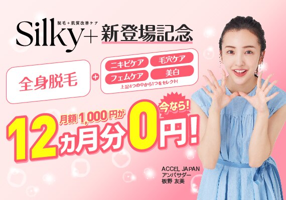 《脱毛しながら肌を綺麗にしたい女性必見!全身Silky+脱毛》ヨーロッパ発祥の最新脱毛技術が日本初上陸!コラーゲンを生成する光で圧倒的な美肌を実現!保湿や潤い肌、美白、小鼻の黒ずみ、ニキビケア、VIOの黒ずみなど女性の様々な肌質改善を行います。