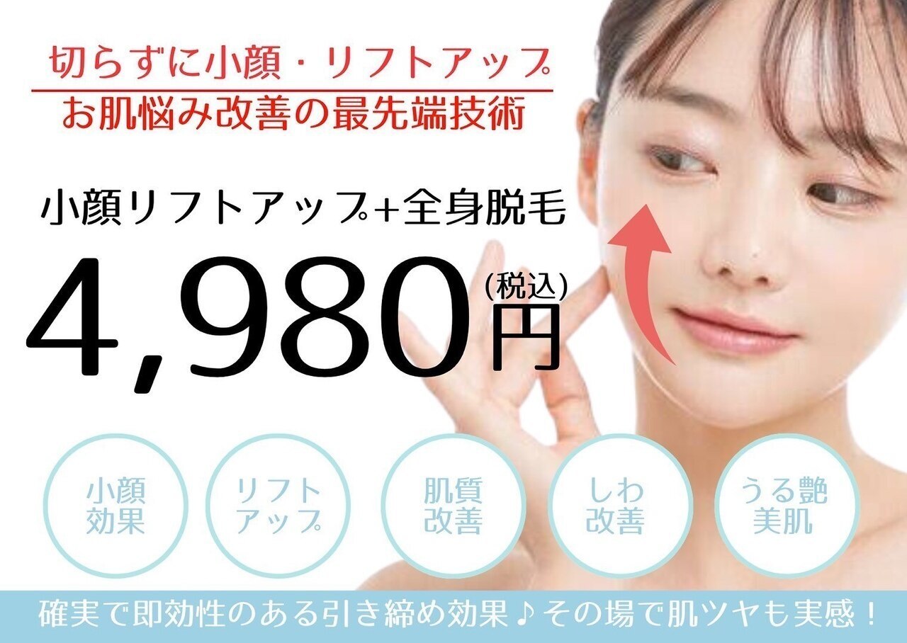 【小顔フェイシャル4980円】【学割U24脱毛】【痩身フルコース体験】小学生から80代までお気軽にご来店いただいています。エステ初めての方も安心。コース契約なし・勧誘なし。リーズナブルな価格で結果しっかり♪ご質問・お問合せもお気軽にどうぞ^^