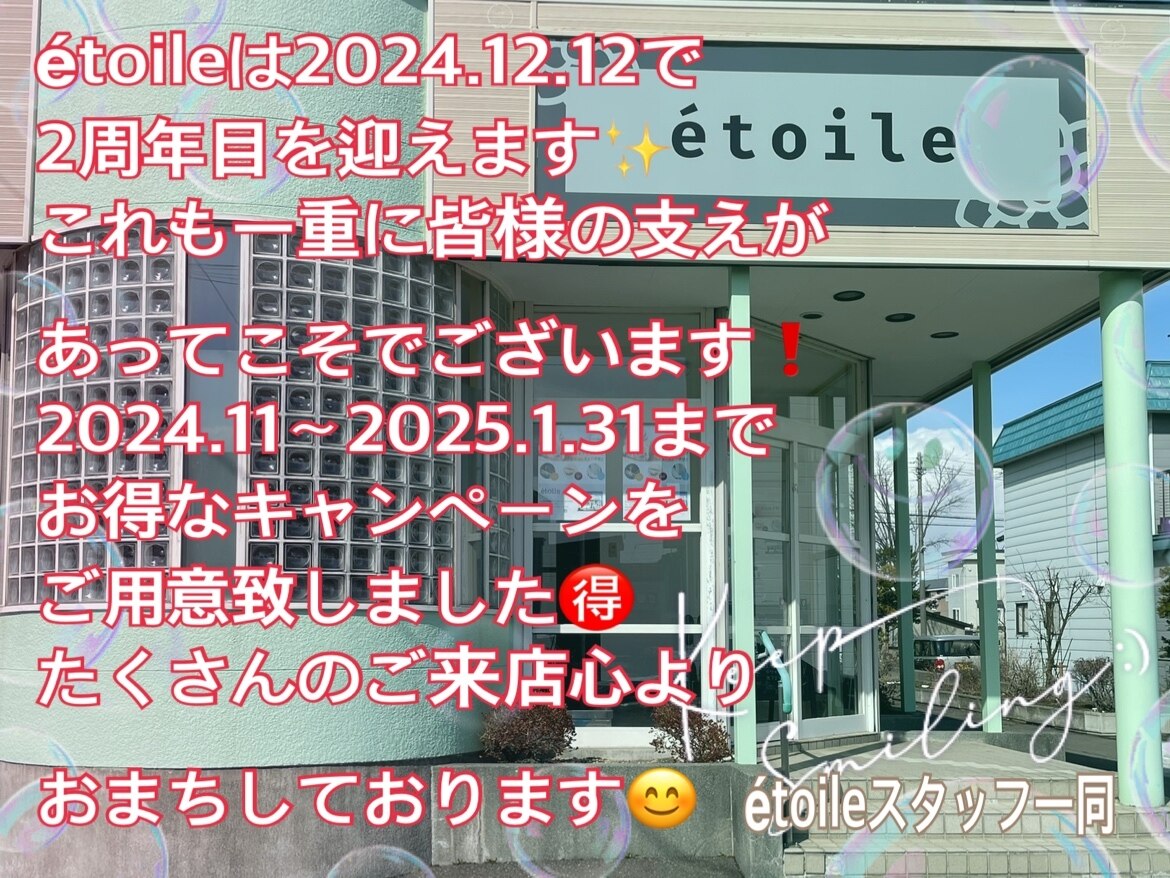 厚別でまつ毛サロンEyelash+SKYをさせて頂いてました♪北広島市在住の方、その近郊の恵庭市/千歳市/長沼町にお住まいの方の中にはお会いしたことある方がいらっしゃるかもしれません(^ ^)当店脱毛サロンetoileでもまつ毛の施術が可能ですので是非よろしくお願い致します♪予約が×になっていてもご案内可能な場合もございますので是非お気軽にお電話にてお問い合わせくださいませ!