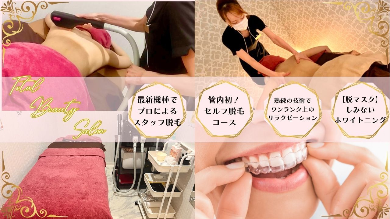 [セルフホワイトニング・痩身・脱毛・フェイシャル・バストケア]など豊富なメニュー展開が魅力の実力派トータルビューティサロンです☆★低価格×高品質でお客様一人一人にしっかり寄り添い施術致します。お子様同伴可◎カード使用、都度払いOKで計画的に通い続けやすい♪ご新規様やエステが初めての方も大歓迎です。