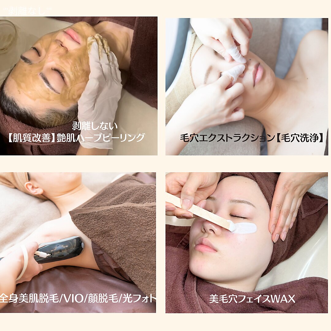 効果最大♪美肌脱毛、肌質改善、毛穴改善!お客様から感動のお声♪今話題の【毛穴エクストラクション】悩んでいる毛穴!何を試しても改善しない毛穴汚れも美毛穴へ♪最高級艶肌ハーブリピーリング【剥離・痛みほぼなし】美肌/ ニキビ/シミしわ/くすみ/乾燥etc様々な肌悩みにアプローチ♪全てのメニューが同時に施術◎