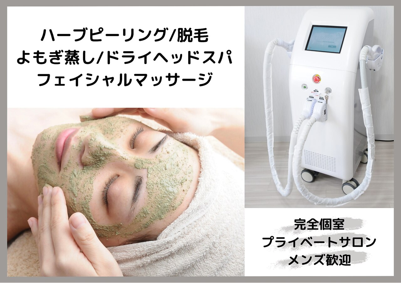 プライベート空間でくつろげる当店は、お一人はもちろん!ペアでの来店も歓迎しています◆【新しい自分に出会えるトータルビューティーサロン】をテーマにフェイシャル/機械痩身/よもぎ蒸し/ボディケアと豊富にメニューを取り揃えています◎肌荒れを繰り返す、なかなか痩せない、代謝UPしたい、リフレッシュしたい!様々な悩みを解消します。お得なセットメニューも充実しています^ ^