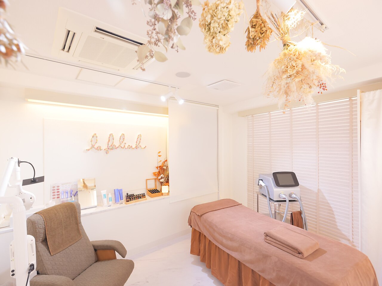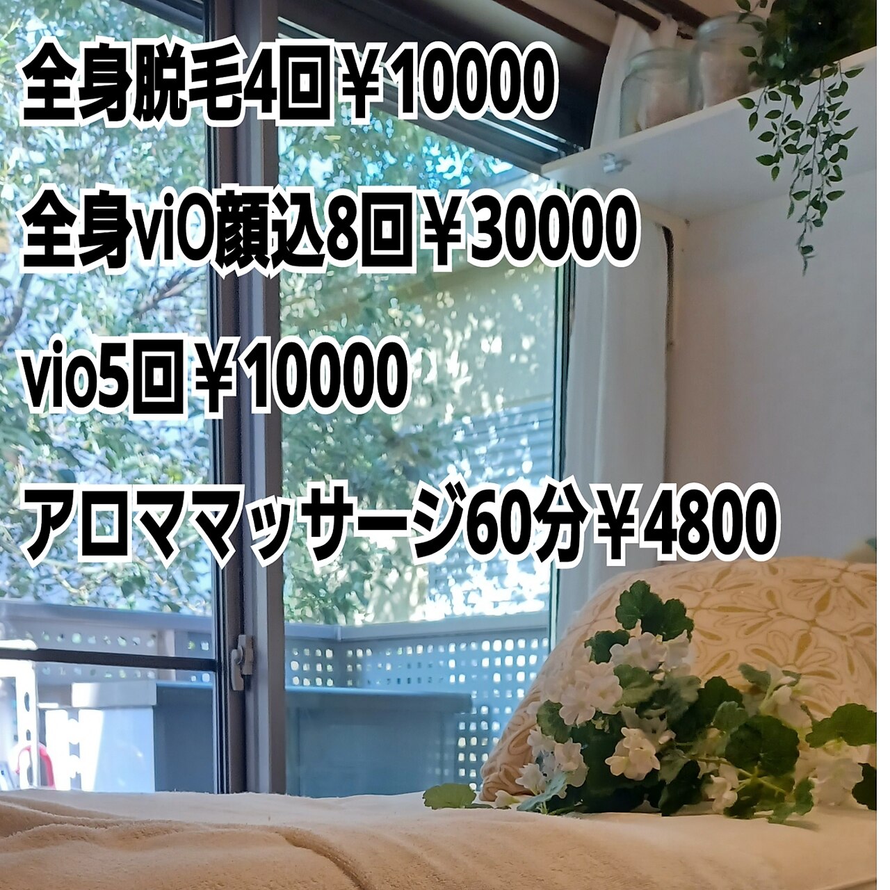 お客様のご要望に寄り添い効果を出せる施術にこだわり続け施術だけでなく私自身が体験し良い商材や機器を取り扱いしております。【コースや勧誘は一切なし】で、安心してご来店いただけるように女性専用サロンとなっております。お客様同士が顔を合わせる事もなく完全個室です。【脱毛/ブラジリアンワックス/VIO/ピーリング/毛穴/シミ/ニキビケア/肌質改善】