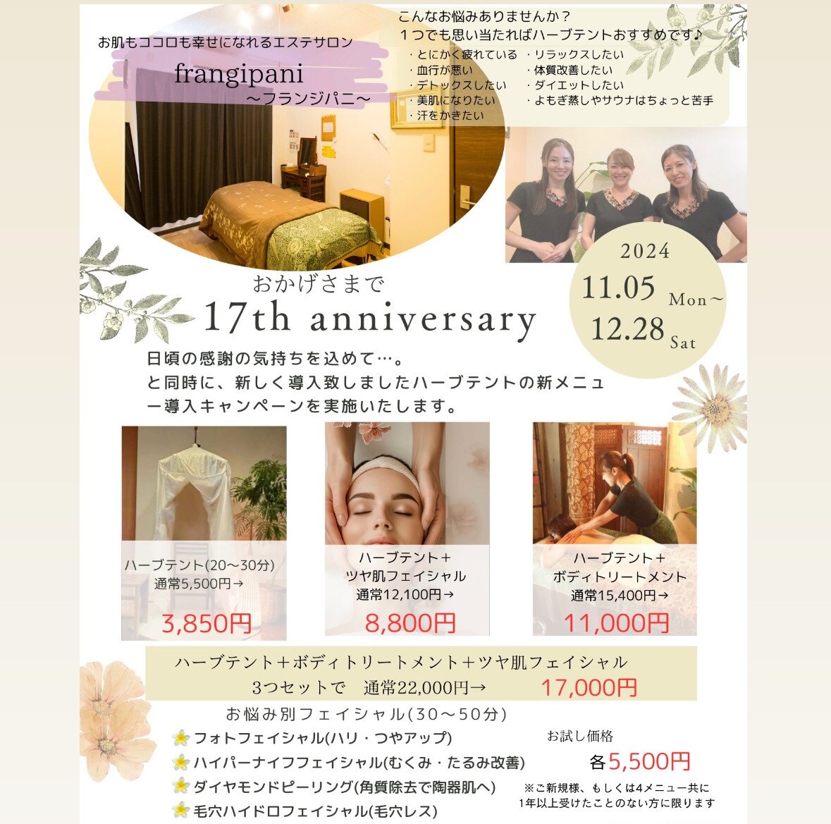 おかげさまでフランジパニ は今年で17年目♪肌改善へと導く化粧品や、機器を豊富に取り揃えています!新たにハーブテントも導入!この機会に是非1度お試し下さい☆化粧品のみ購入も可!【ドクターリセラADS正規取扱店】【スピケアV3シリーズ正規取扱店】