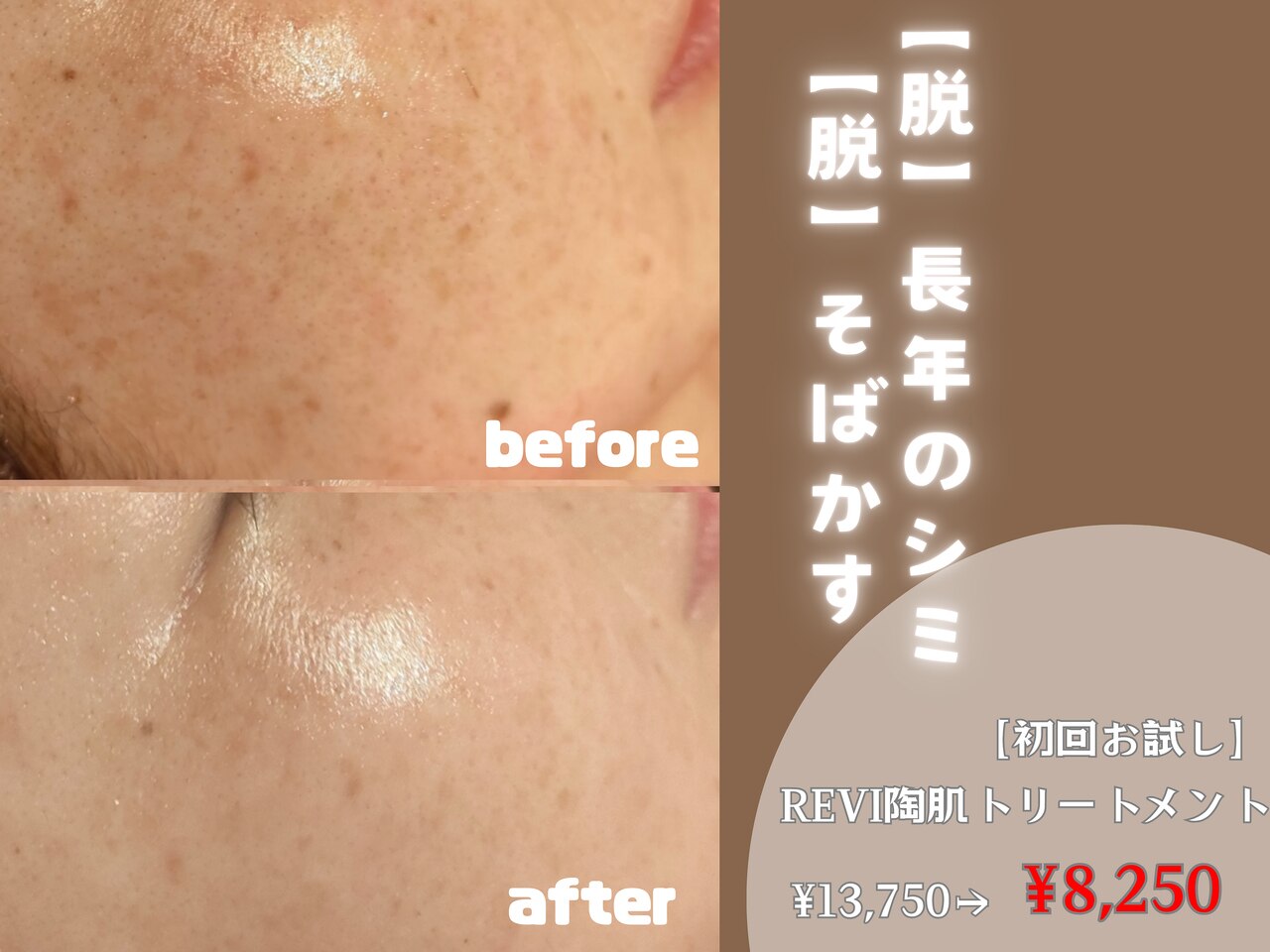 【プライベートサロン】何をしても変わらなかった方必見!人気急上昇中ハーブピーリングなら《REVI陶肌トリートメント》ニキビケア/毛穴/シミ/シワなど、お客様のお肌悩みに合わせた本気の肌質改善!光フェイシャルと組み合わせて更に効果アップ!セルフホワイトニングで口元からもキレイに導きます☆