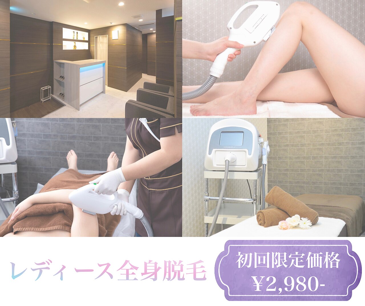 | 脱毛方式 | 医療脱毛(ジェントルレーズPRO / ウルトラ美肌脱毛機 / メディオスターNeXTPRO) |