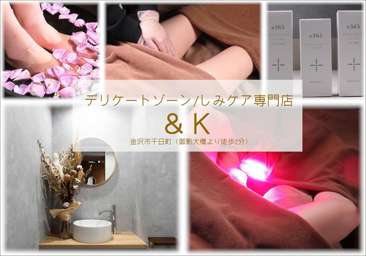 【&K】は女性特有のお悩みを抱える一人一人に寄り添い『なりたい』を叶えるお手伝いをサポート致します☆完全個室のプライベート空間で。最新のデリケートゾーンケアからフェイシャル、ボディ等様々なMenuで大人女性が「一つの小さな自信」から前向きに生き生きといつまでも健康で美しく毎日を過ごせるようにと全力でケアさせて頂きます☆♪https://www.instagram.com/and_k_kanazawa