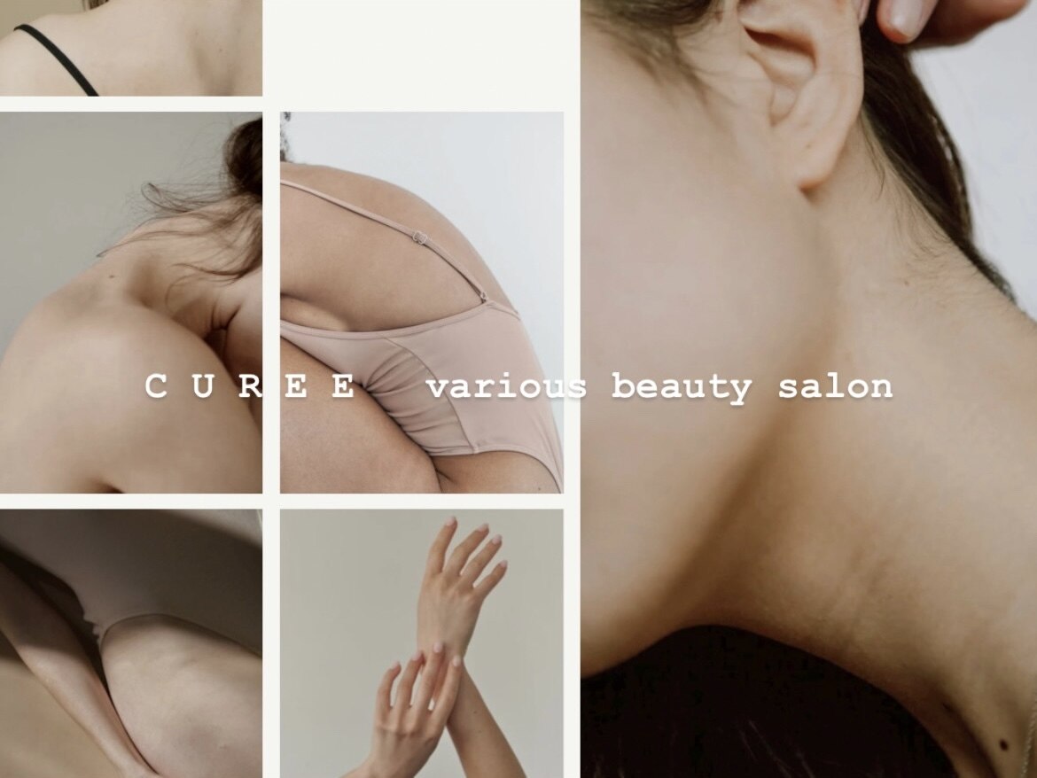 脱毛、フェイシャル、ボディメンテナンス、アイケアが叶うトータルビューティーサロン。結果重視の当店では美容機への拘りだけでなく的確なアドバイスや技術力をご提供いたします。専属セラピストによる各施術は優秀そのもの。本物志向の女性達に支持される”CUREE various beauty salon”で心からお待ち致しております。