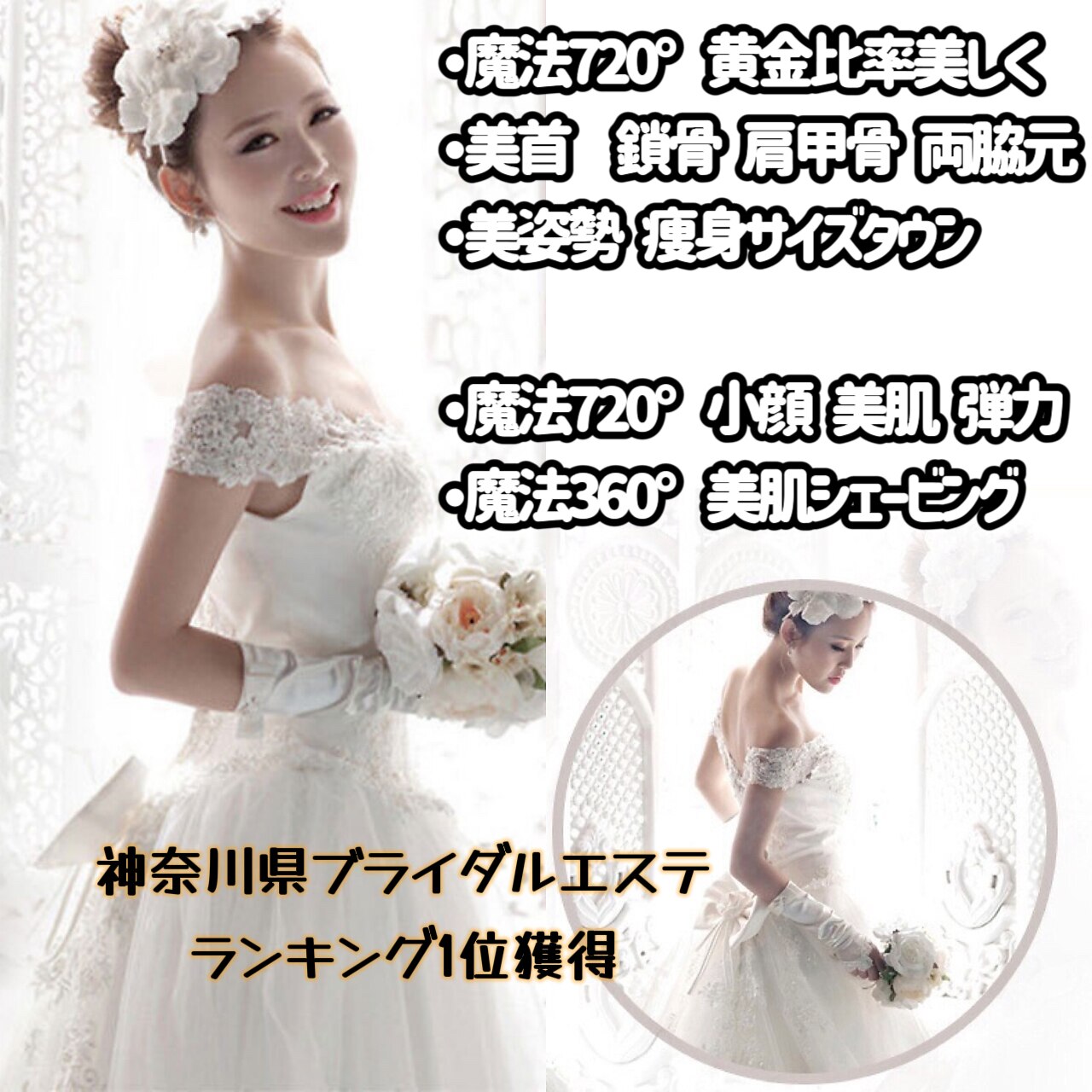 世界大会日本初SPA総合優勝の施術力で”トータル美の魔法”をかける骨格痩身や小顔のコース名に”魔法720°★リバウンドしづらく◎美体型痩身/若見え小顔/結果重視一生に一度の負けないブライダル痩身◎お悩み肌対応ウェディングシェービング*ダイエットを卒業したい方や美しい姿勢をgetしたい方今よりも魅力的なあなたに♪