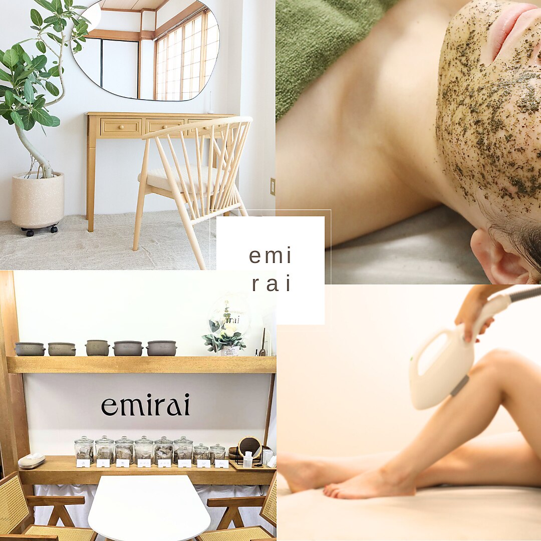 完全個室のアットホームサロン♪都度払いなので無理なく自分のペースで通って頂けます。剥けない陶肌ハーブピーリング、毛穴洗浄、美肌脱毛、シュガーリングなど、お客さまに寄り添ったカウンセリングから最適な組み合わせでご提案★全力でじぶんを好きになるお手伝いをさせていただきます!インスタ→emirai_salonで検索
