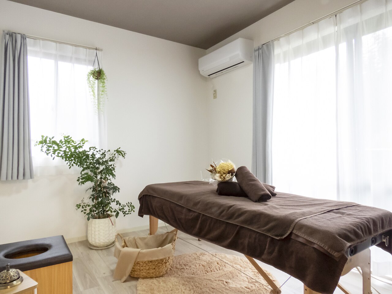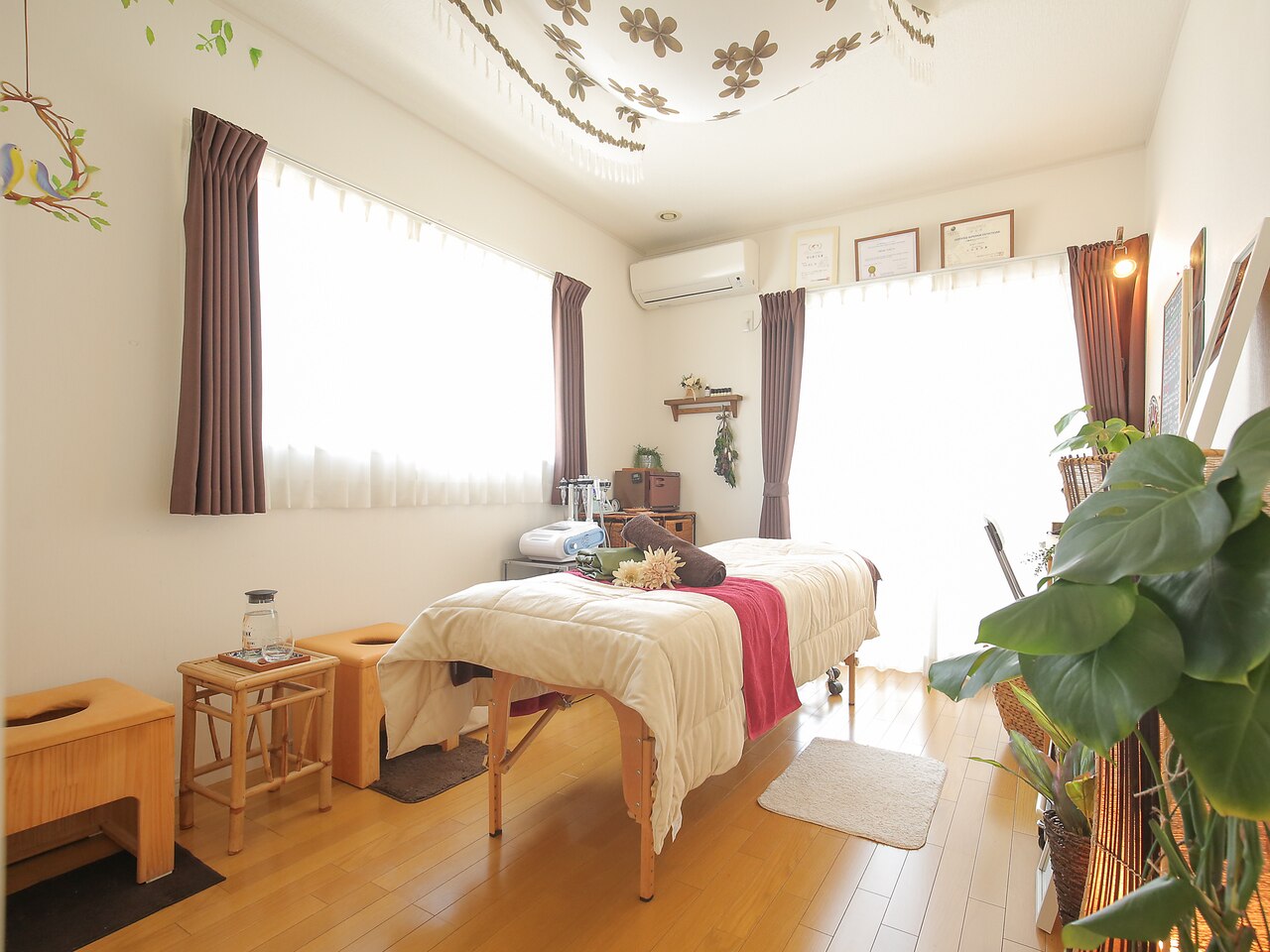 閑静な住宅街の中にある隠れ家サロン。窓からは竹やぶを見ることができ、お客様に合わせてアロマでお部屋の香りをかえさせていただいております。体を整えながら、心もほぐれてリラックスしていただけます。