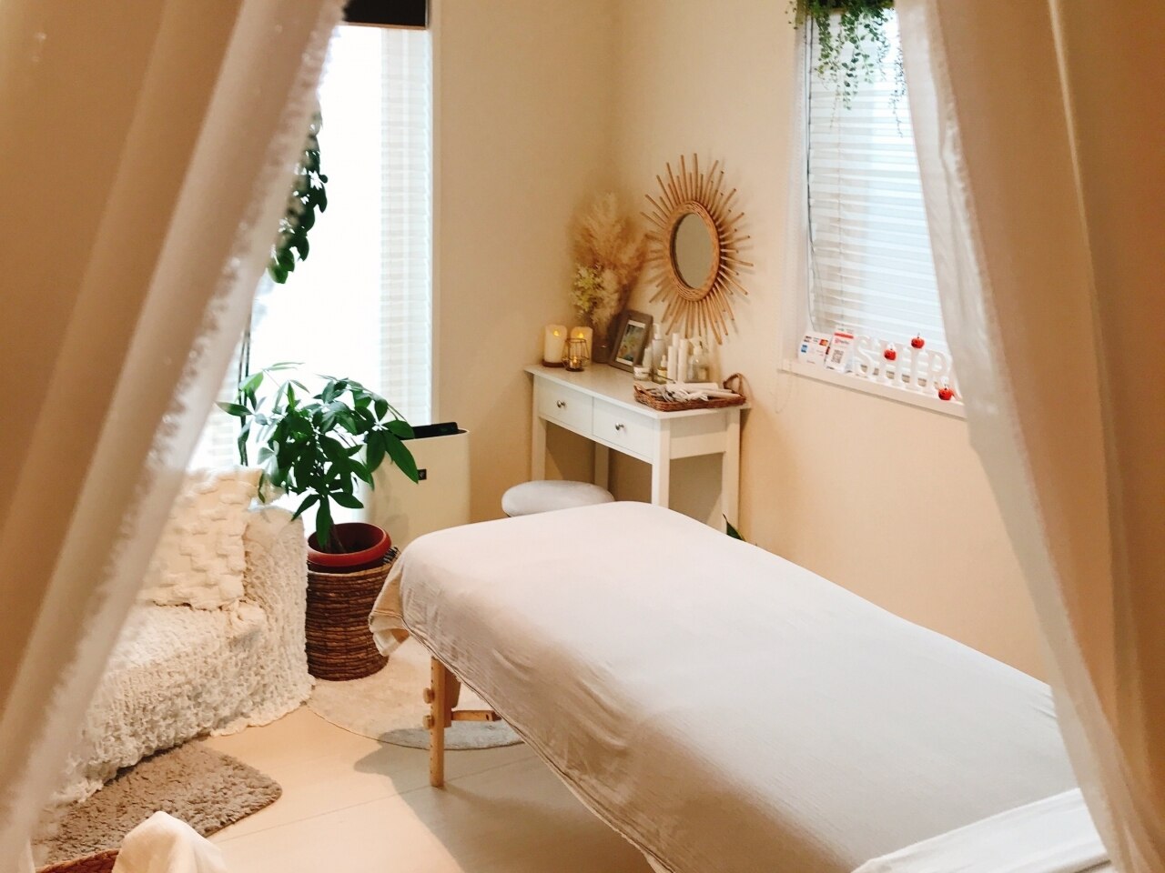AM9:00~営業☆プライベート空間で居心地も◎色鮮やかな日常を忘れ、何も考えず”真っ白”な時間をお過ごしいただける場所、「やっと出会えた!」「また受けたい!」と思っていただけるような”心に残る施術”をご提供できるよう心がけております。高技術+通いやす価格設定で皆様のご来店をお待ちしております。
