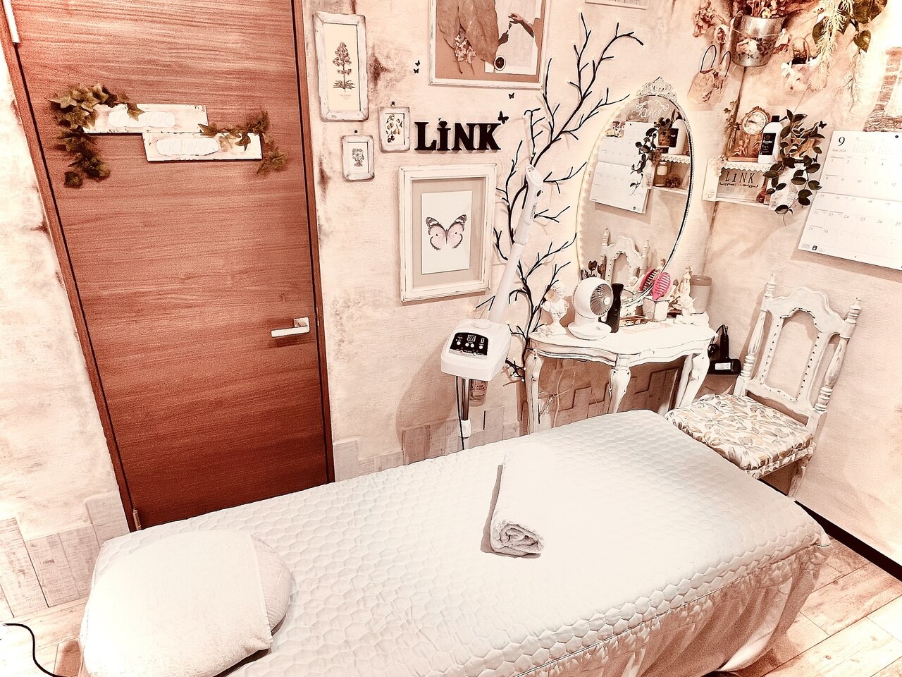 LiNKはアンティーク調の家具や小物、スタッフが心を込めて作った物で溢れたお店です♪それと同じでお客様も1人1人を同じく大事にして、キレイを提供すると同時に【心のケア何でも話せるサロン】を目指しております☆メンズメニューもございますのでご利用くださいませ☆全力でお客様の綺麗を願っています◎気軽にご来店くださいませ☆毛穴特化の韓国式3D毛穴洗浄もおすすめです