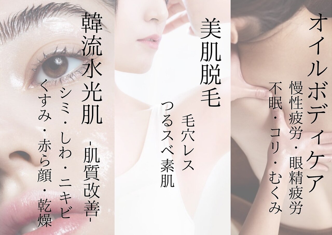オトナ女性のミカタ!すっぴん艶肌へ♪丁寧なカウンセリング、お客様にあった施術をご提供◎剥離なしハーブピーリング・ヒト幹細胞培養液・光フェイシャルで水光肌へ♪ハーブピーリング/毛穴/ニキビケア/小顔/ブライダル/リフトアップ/脱毛/リンパマッサージ/ヘッドスパ/初めての方もお気軽にお越し下さい♪登米市