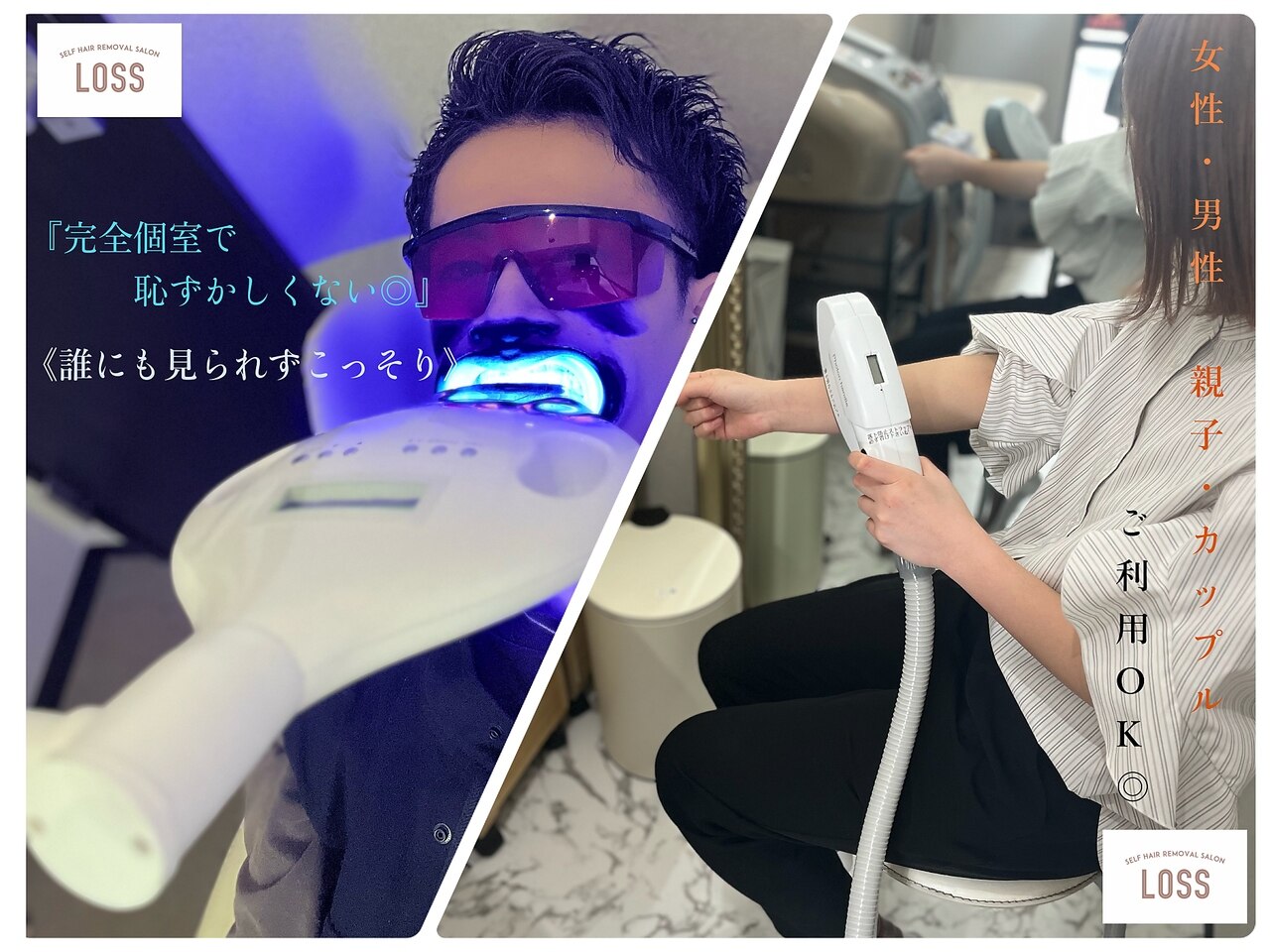 美容室に併設されている脱毛サロンです。完全無人のセルフ脱毛と比べ、美容室スタッフが脱毛についての説明や使用手順等わかりやすく説明させていただきます。希望時間内であれば何回照射しても料金はそのまま!人に見られるのが恥ずかしい方や、他店で脱毛後に再度生えてきてしまった箇所もピンポイントで脱毛OK◎自分流の脱毛試してみませんか?