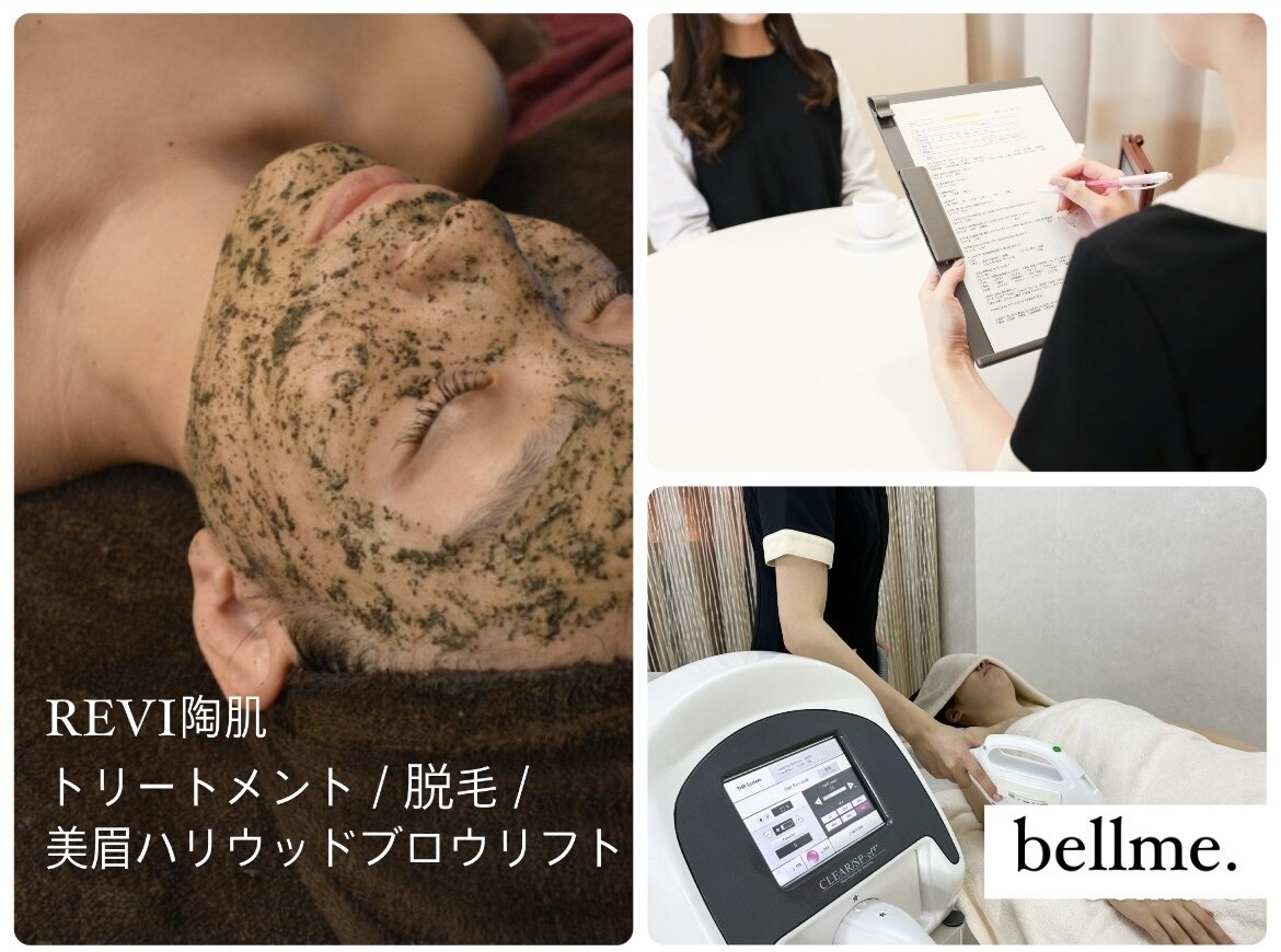 bellme.では皆様のお悩みに真摯に向き合い、一緒にお客様の目指す美を追求してまいります。また、サロンにお越しいただくことでリラックスしていただき、お客様の心も満たせるような癒しの場所になりたいと思い日々取り組んでおります。脱毛、REVI陶肌トリートメントなど様々なメニューを取り揃えております。皆様のご来店を心よりお待ちしております。