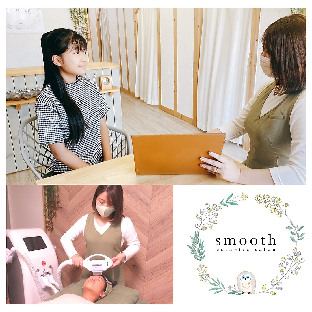 新常識☆今やお子さんも大人と同じムダ毛を気にする時代!学校で肌を見せるのがイヤ…そんなお悩みをお子さん一人で抱え込まないで大丈夫♪エステサロンぽくないサロンが【smooth】のコンセプト!通いやすいお店で安心してツルツルなお肌を手にいれませんか?大人の脱毛初心者さんも大歓迎♪最高級脱毛器ルミクスa9使用店