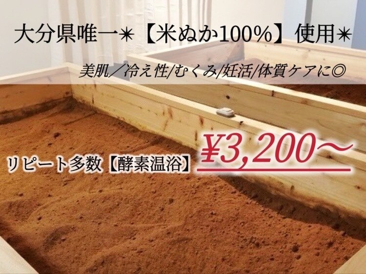 大分県でも導入が少ない最新脱毛機を使用!今までの脱毛の概念を覆すような効果を実感☆酵素温浴は珍しい米ぬか100%で、ぬか本来の力がしっかりと出て美肌美白に効果大◎温度が安定しており、暑すぎないので心地よく入れます☆基礎体温UPで温活や妊活にも*ペア割有◎女性に嬉しいフェイシャル・痩身メニューもご用意♪