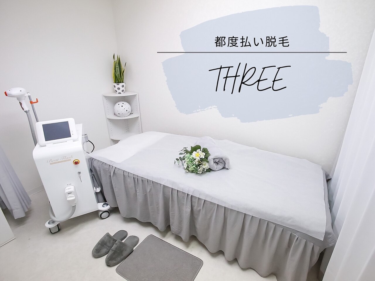 当機器は国産で結果に自信のある最新脱毛器THR式を搭載しております。当店はお客様に気持ちよくお過ごしいただけるようプライベート空間をご提供。ていねいな接客とお客様に寄り添えるよう心がけております。お客様の理想より付帯したサービスを理想としております。よろしくお願いいたします◎