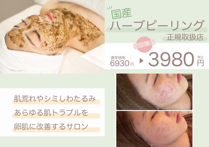 大人女性の肌質改善サロンめざせ若見え肌◇老化を感じ始めた30,40代のお肌にシミ,しわ,くすみ,たるみ緩和ケアができるこだわり国産ハーブピーリング♪くすみ知らずの美白肌◇脱毛は最高級マシン使用で効果抜群,通う回数が少なくお得!他店コース終了組も◎ぜひお試しを【近鉄東花園駅徒歩2分】個室/メンズ脱毛◎