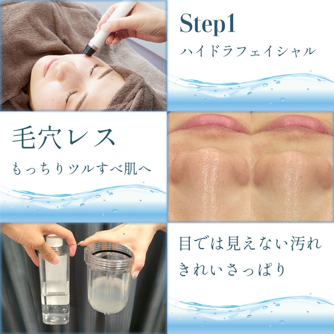 毛穴レス生活、はじめませんか?お肌のざらつき/黒ずみ汚れを大人気ハイドラフェイシャルでごっそり洗浄!施術後の衝撃結果も…!過剰な皮脂の分泌を抑え、テカリ知らず潤う美肌へ◆管理栄養士による食事アドバイスで内側からも美しく◎骨格分析付き美眉ハリウッドブロウリフト/ホワイトニング/通い放題サブスクもご用意★