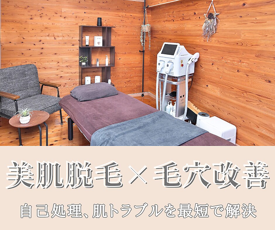 お客様おひとりおひとりのお悩みをお伺いし、満足していただきたい…そして、楽しくリラックスした時間を過ごしていただけるサロンを目指しています!なにより脱毛効果を実感していただくため、最新のマシンを取り入れております。「キレイになりたい!」を目指す方、男女、キッズ問わず心よりお待ちしております♪一緒に毛穴が目立たないキレイなつるすべお肌を目指しましょう♪