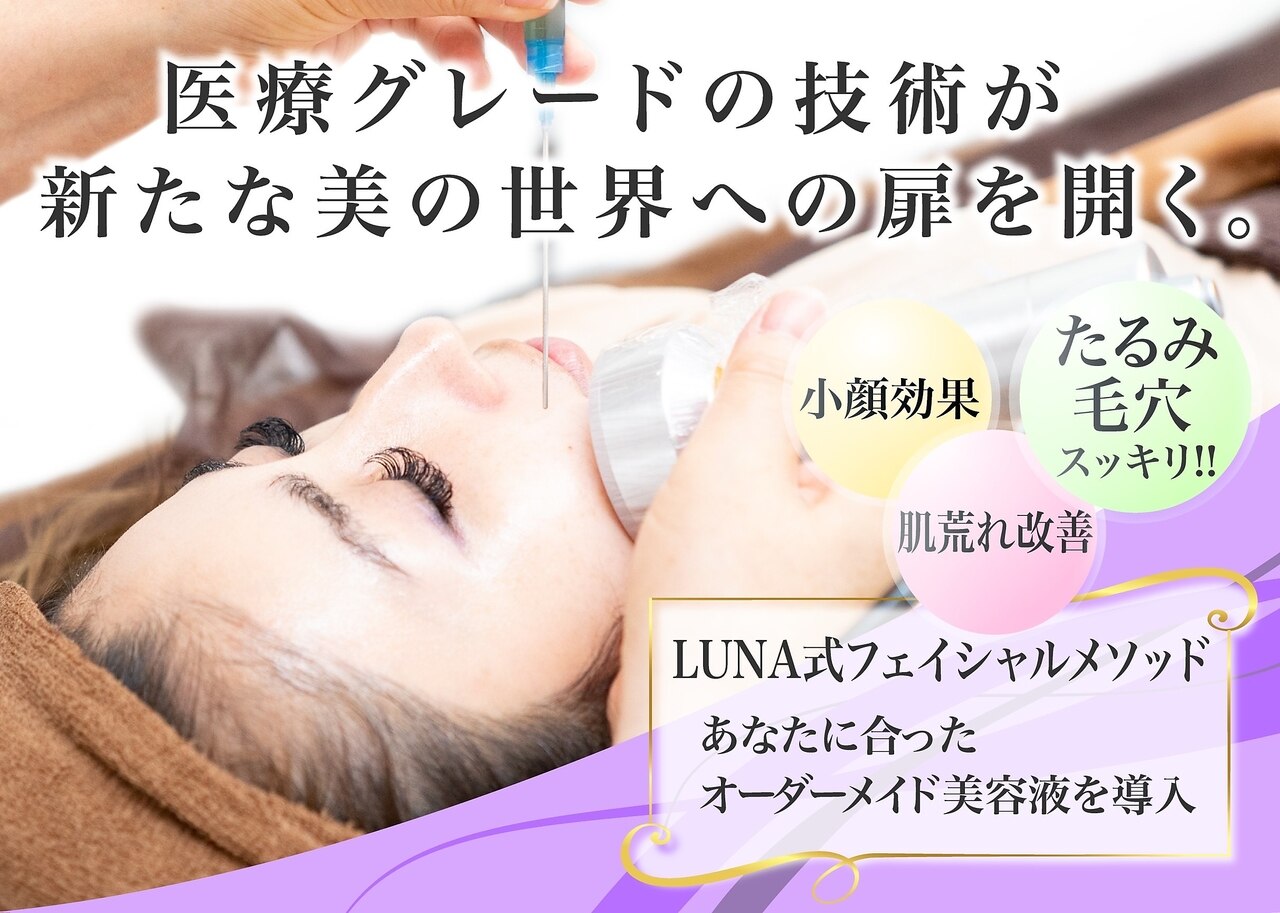 ~全ての人生は美しく輝いている~『LUNA』とは夜空に輝く月という意味。宇宙に一つしか存在しない月。満月、半月、三日月と形が変わっても輝き美しい月『LUNA salon』では女性、男性、幅広い層の方まで自信を持って輝いて生きる『美』を提供してまいります。そして、『LUNA salon』を通じて世界に一人しかいないあなたが輝くお手伝いをしてまいります。LUNA salon今日キレイになれる。