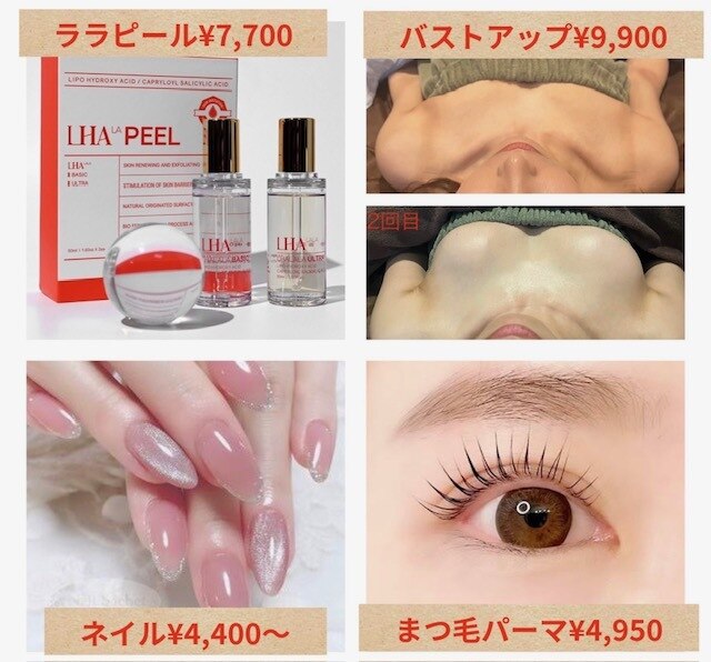 個室完備・お子様連れOK!ドクターリセラ化粧品使用の肌改善フェイシャルエステティックサロンです。顧問医師提携店。滋賀初バストアップメニュー・ララピール・シンプルネイル・次世代まつ毛パーマ(ラッシュリフト)・アイブロウ・メンズ脱毛など、メニューが充実!長年の経験豊富なスタッフが心を込めて施術いたします。