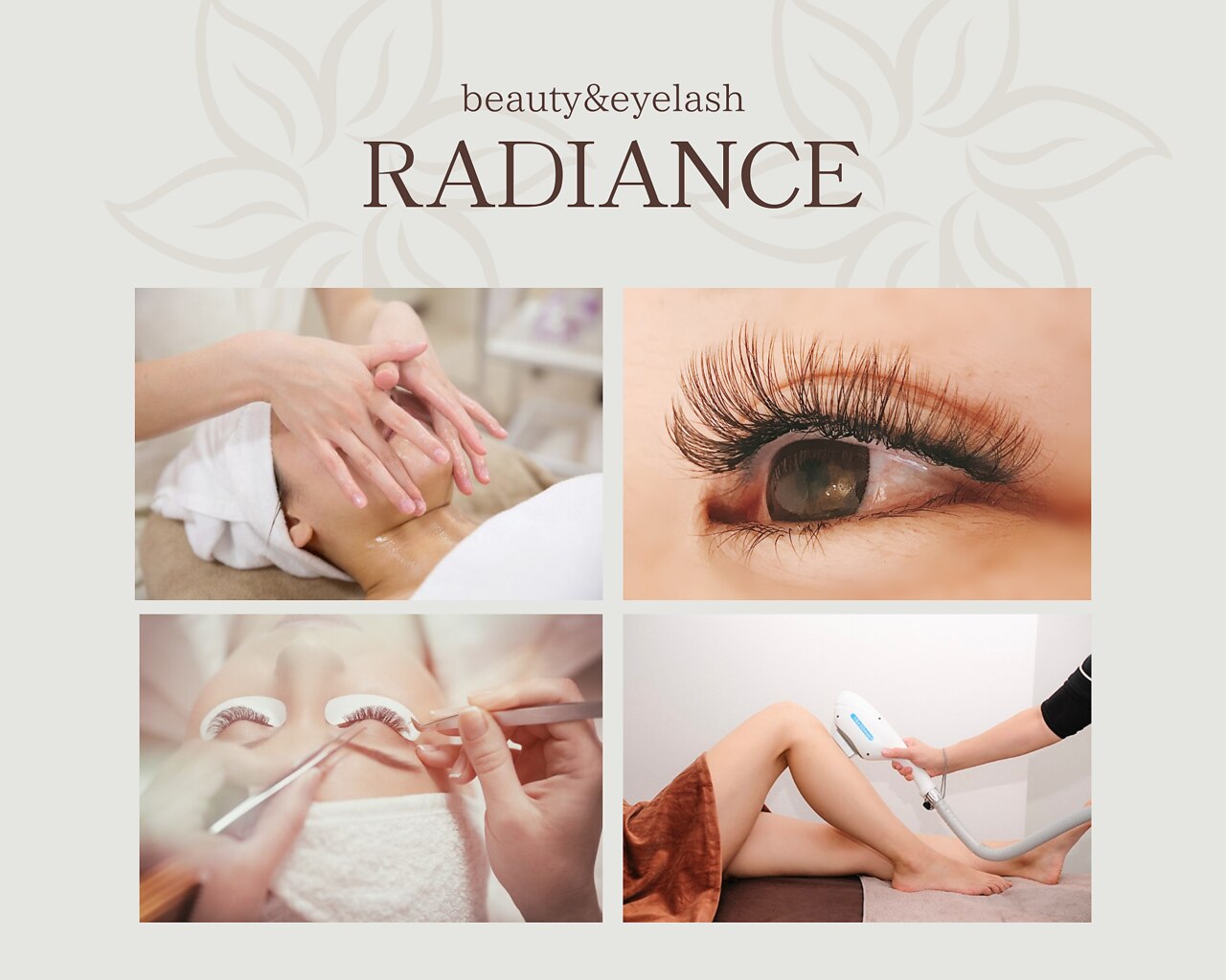 サロン名『RADIANCE』には、「輝き・光輝・発光」という意味です。「お客様にご満足頂き、楽しく幸せで輝く毎日を過ごして頂きたい」そんな想いのもとサロンをオープンしました。多種多様なメニューをご用意しております。お客様に寄り添ったサービスで、いつもとは違う極上な時間をお過ごしください。皆様のご来店心よりお待ちしております。
