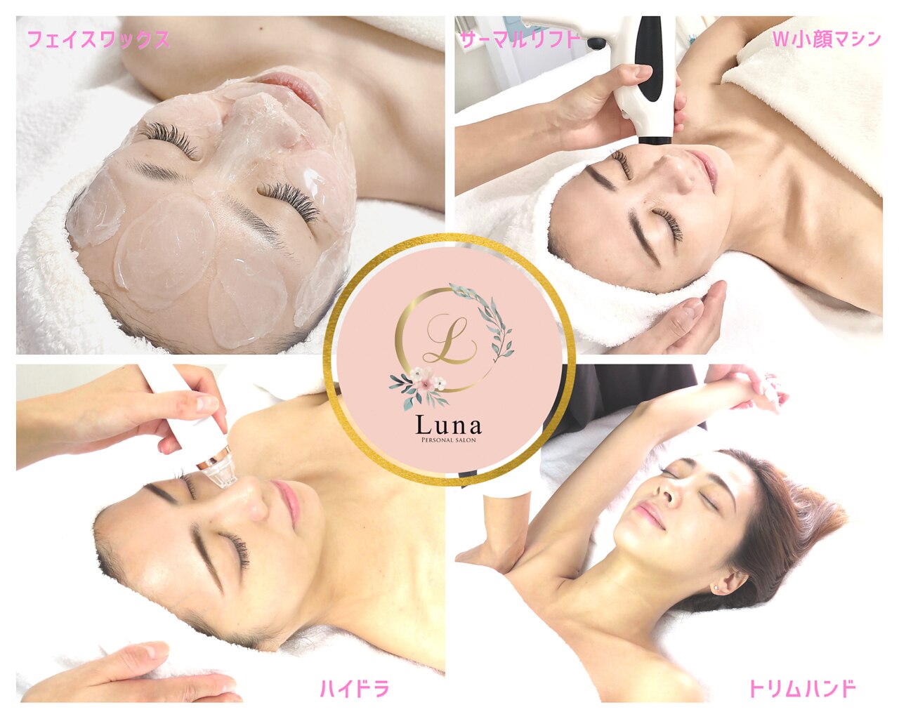 医療&美容関係者も通う満足度の高いLuna美肌術☆乾燥肌荒れシミシワ改善のラミネーションピール韓国美容◎お肌に合ったメニューのご提案&独自のW小顔術引き締め×美肌が同時に叶う!プライベート空間で周りを気にせずお寛ぎください♪ハイドラ/毛穴洗浄/サーマルリフト/waxing/顔脱毛/ピーリング/ニキビケア/美白ケア]