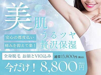 vioダブル脱毛★しっかりくまなく最新全身脱毛に技術の高いブラジリアンワックス★都度払いサロン★笑顔溢れるエイジレスサロン、潤いのあるツヤ肌へ☆美肌脱毛 最新のハイブリッド式SHR光脱毛マシンと熟練スタッフによるワックスと脱毛の二種類の脱毛法ご用意、行きたい時に、急なご予定の際に★