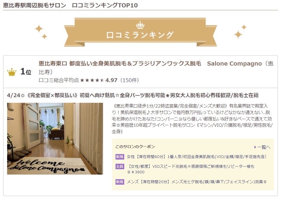 脱毛/マツエク/ホワイトニング【恵比寿駅東口徒歩1分 】 ☆最新のLEDも人気☆ |