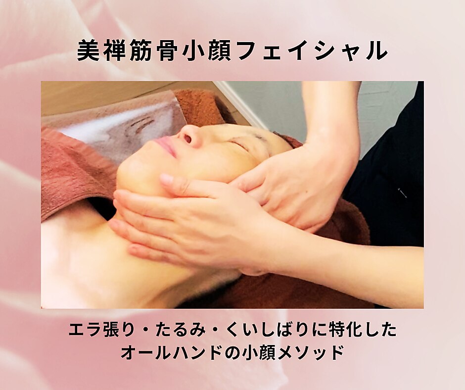 エステ歴30年以上の熟練のセラピストによるオールハンド施術。フェイシャルはまぶた、目の下、法令線、フェイスラインなどのゆるみ、むくみにアプローチしスッキリした若々しい表情を作ります。ボディは経絡リンパマッサージでコリ、疲れを流します。お肌も身体も心もスッキリ!ご来店お待ちしております。